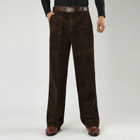 Men’s Corduroy Trousers With Pleated Front and Wide-Leg Fit