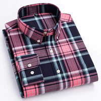 Men's Casual Long Sleeve Plaid Shirt with Button Down Front