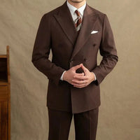 Men's Double Breasted Two Piece Suit Set with Peak Lapel Jacket and Trousers